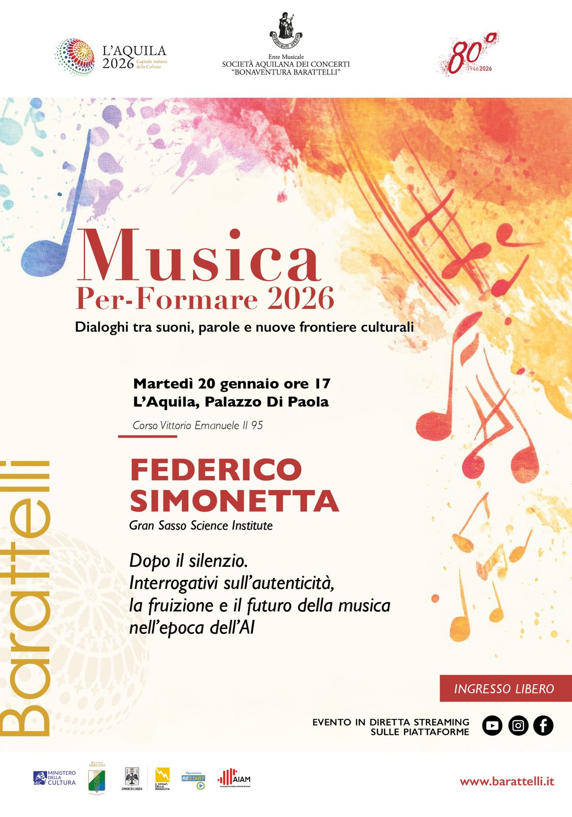 Musica Per-Formare 2026 Federico Simonetta (GSSI Institute) in “Dopo il silenzio. Interrogativi sull’autenticità, la fruizione e il futuro della musica nell’epoca dell’AI”