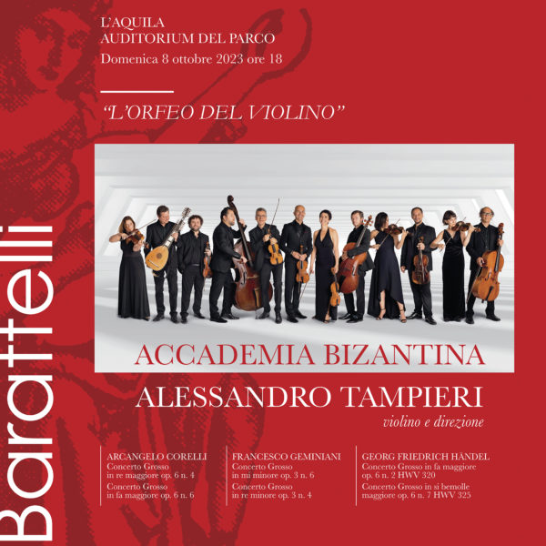CS081023 Torna a L’Aquila l’Accademia Bizantina, uno dei migliori gruppi di musica barocca italiana. L’8 ottobre i più celebri Concerti Grossi con il violinista Alessandro Tampieri