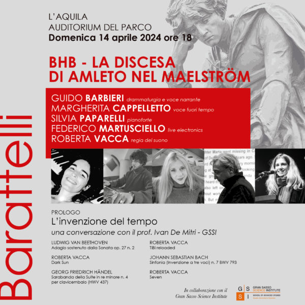 CS140424 In scena a L’Aquila domenica 14 aprile “BHB – La discesa di Amleto nel Maelström”, spettacolo fra mito, musica e scienza.