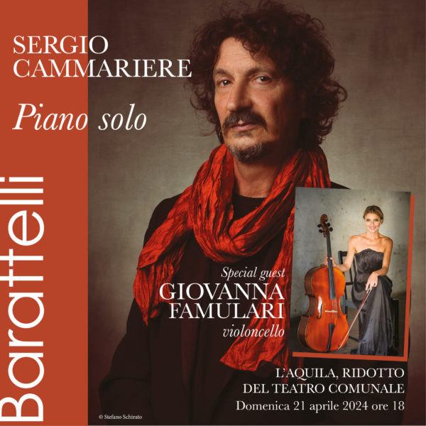 CS210424 La Barattelli porta in concerto a L’Aquila il cantautore Sergio Cammariere con il suo Piano Solo, special guest la violoncellista Giovanna Famulari. Evento in programma domenica 21 aprile al Ridotto del Teatro Comunale.